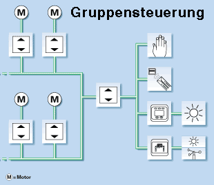 die Ansteuerung durch einen gemeinsamen Wind-, Sonnensensor ist möglich.